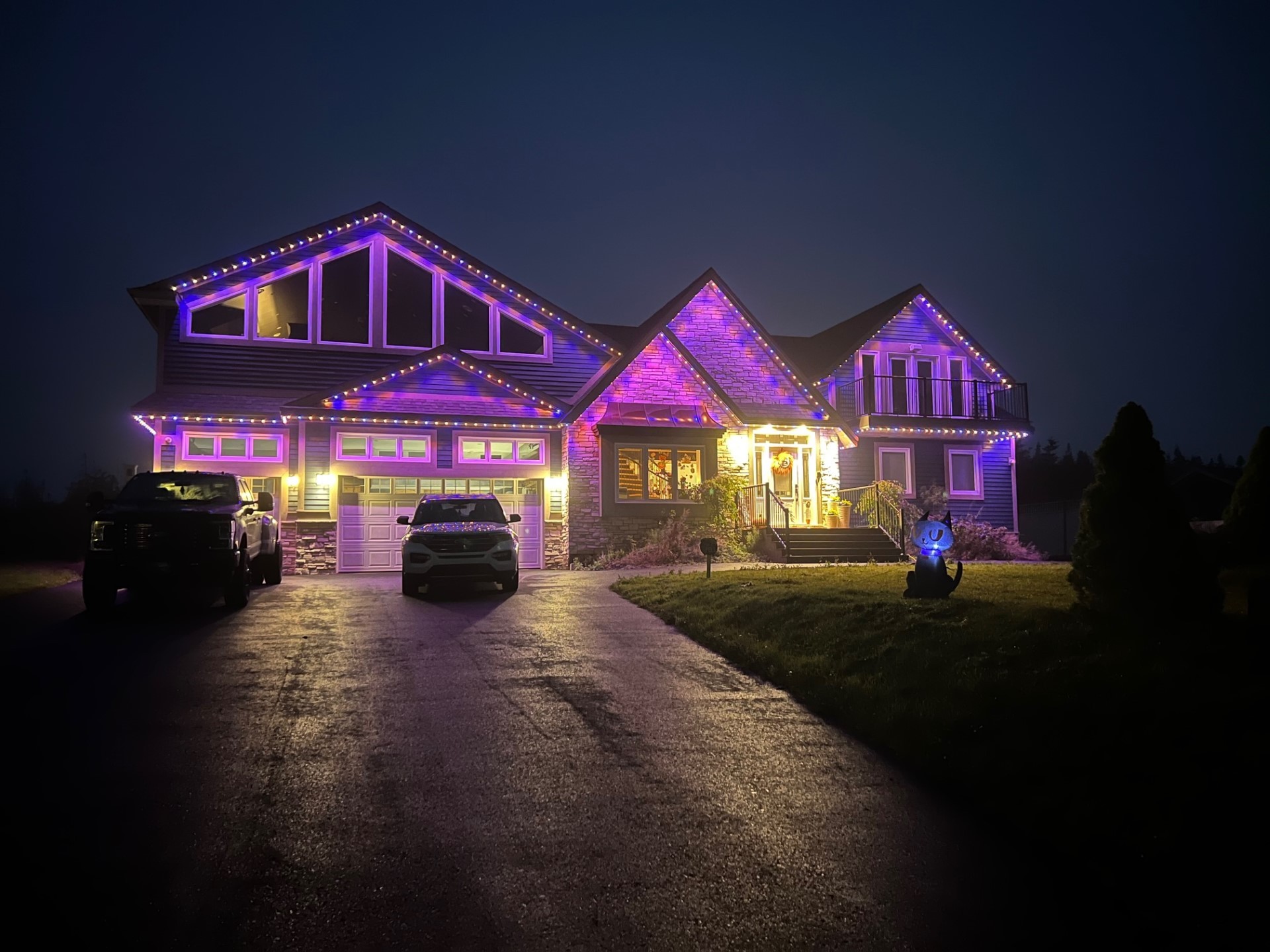 🍂 Custom Lighting Layout: Creation of a tailored lighting plan designed to integrate seamlessly with soffits and landscape features.